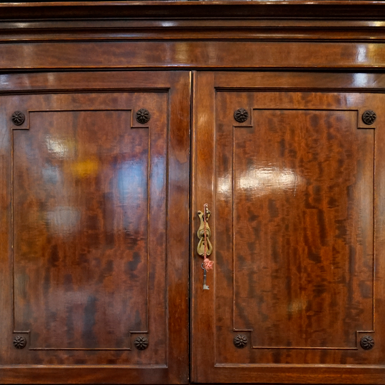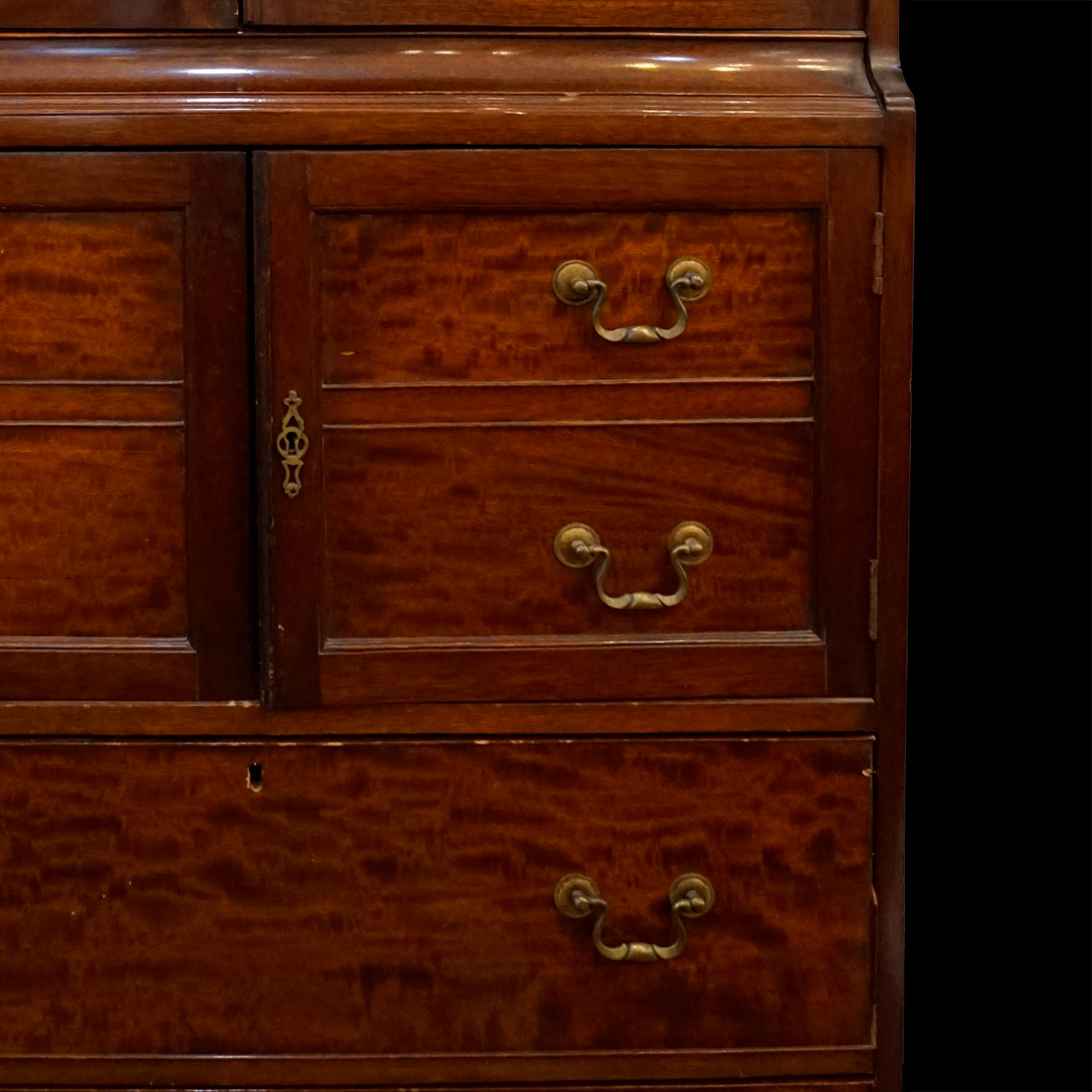 bureau cabinet de caoba acabado satinado que resalta su veteado natural. mobiliario inglés georgiano tardío o Regency de finales del siglo XVIII.