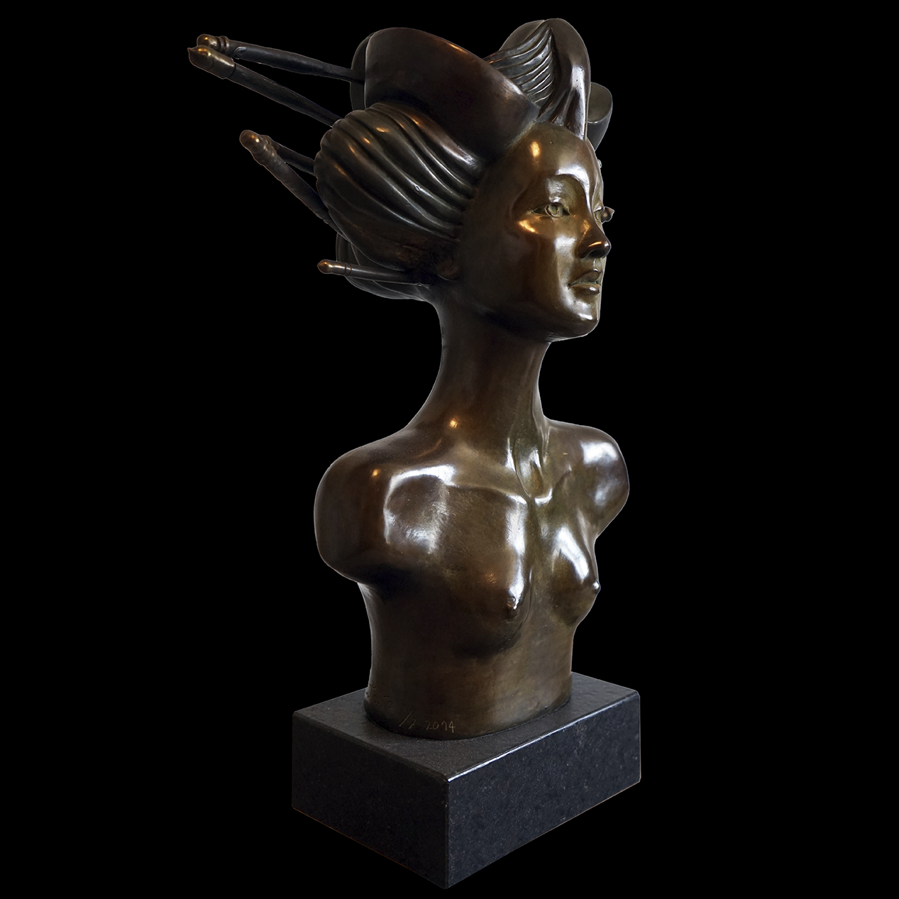 Busto de bronce de mujer asiática realizada por Francisca Castaño