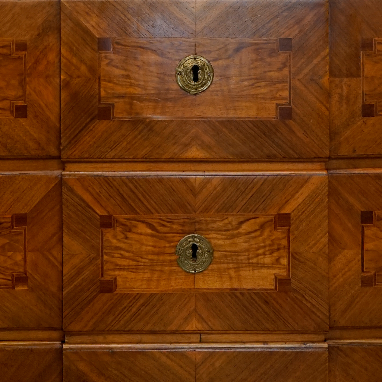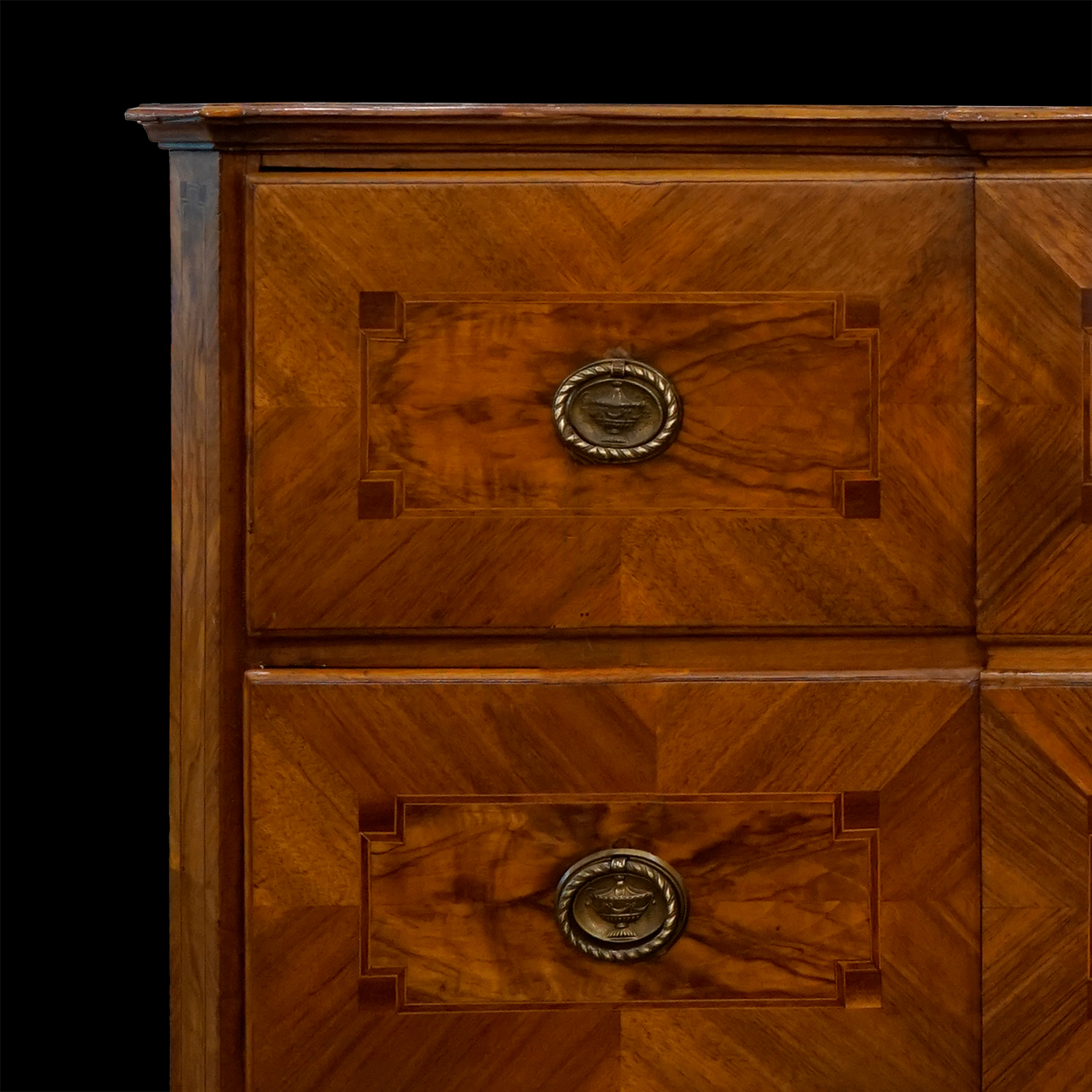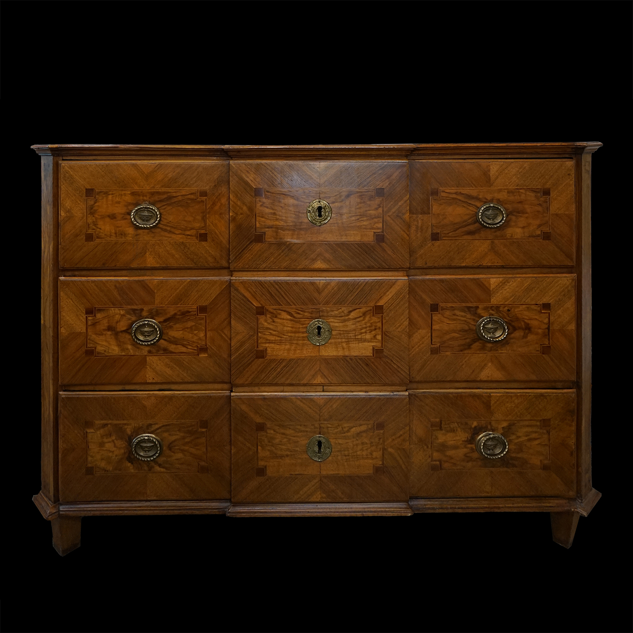 Cómoda de nogal con tiradores de bronce. Francia principios del XIX.