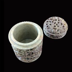 Caja para tabaco de piedra china, tallado en sobre relieve con temas florales-1940.