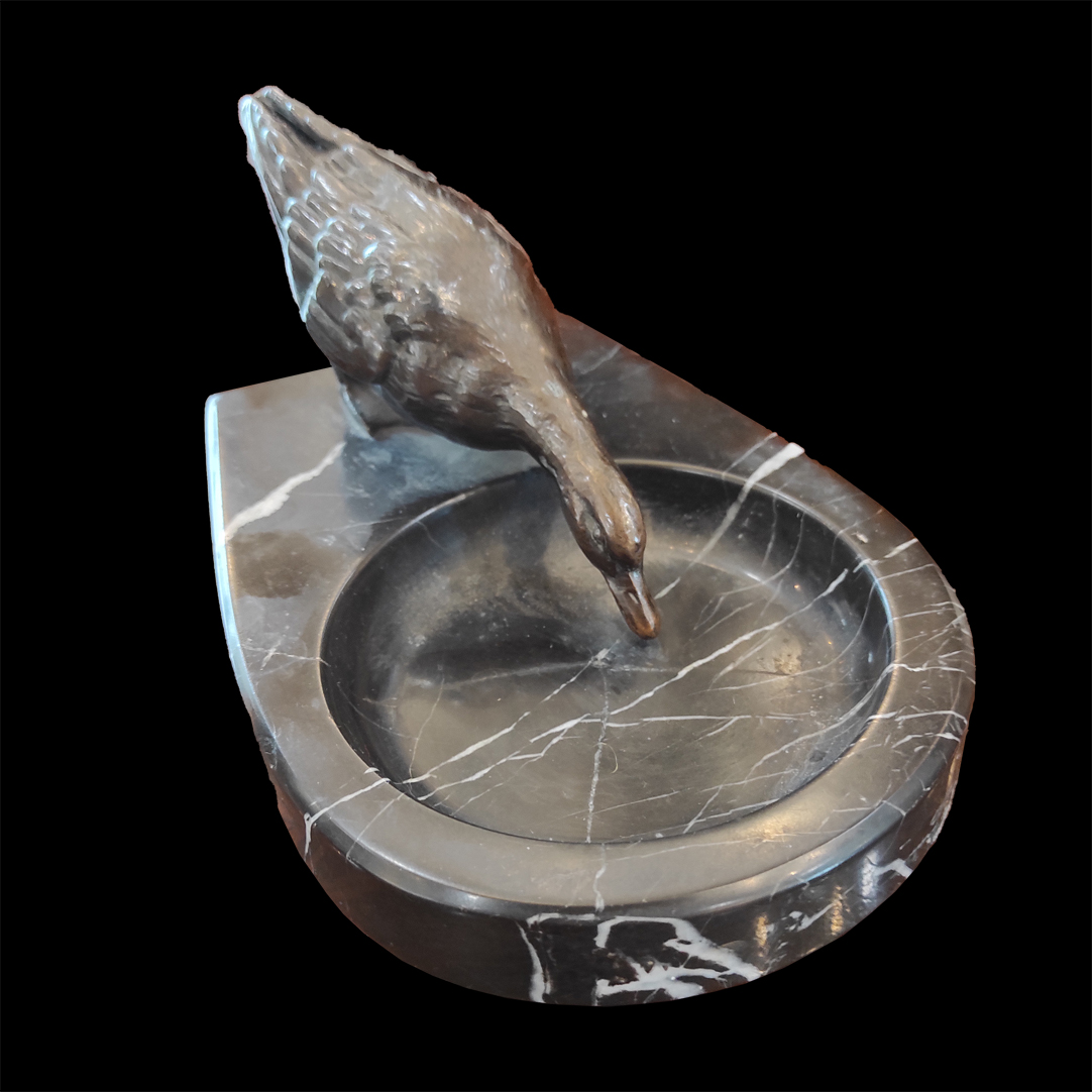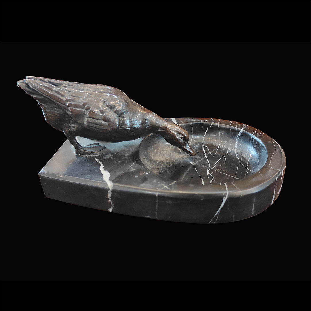 Figura de bronce de pato bebeindo agua, Francia 1930.